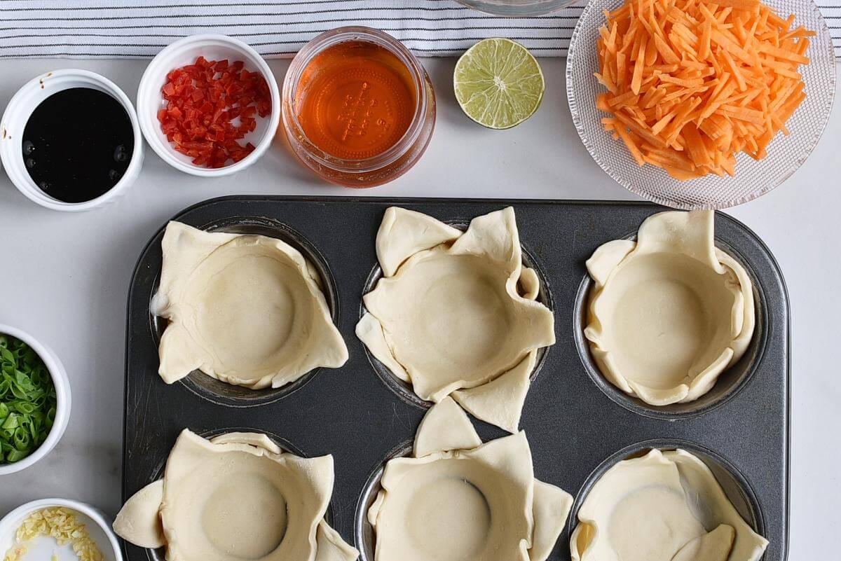 Mold wrappers into miniature muffin tins to form cups. Posted by emily bites in 2 blue, 2 green, 2 pp, 2 purple, all recipes, asian, main course muffins/cupcakes, main dishes. Wonton wrappers come to the rescue whenever i need a fast appetizer or snack. Brush wontons lightly with oil. Wonton wrappers crisp up in the oven and hold a savory chicken salad with cabbage, garlic, bell pepper and fresh herbs.