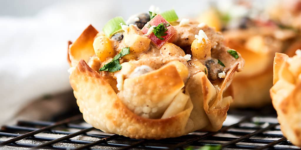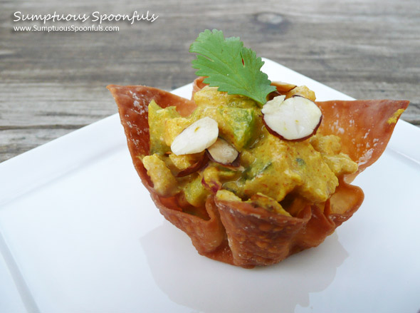 Just 100 calories or 2 myww smartpoints on the green, blue and asian chicken wonton cups. Stir in oil, vinegar and thyme. Crispy wonton cups with spicy chicken salad. Wonton wrappers come to the rescue whenever i need a fast appetizer or snack. Using wonton wrappers as serving bowls is an easy and fun way to control portion size.